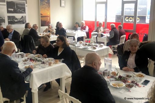 Ayrıca, kısa süre önce seçilen ADD Hopa Şubesi'nin yeni yönetimi de Başkan Sultan Akbıyık öncülüğünde etkinliğe tam kadro katılarak emeklilerin bu özel gününe destek verdi. "Dayanışma ve Sevgi Büyüyor" Gecenin açılış konuşmasını Hopa Belediye Başkanı Dr. Utku Cihan gerçekleştirdi. Cihan'ın ardından sırasıyla Tüm Emekliler Sendikası Şube Başkanı Saim Aydın ve ADD Şube Başkanı Sultan Akbıyık da söz alarak günün anlam ve önemine, ayrıca emeklilerle dayanışmanın kıymetine değinen birer konuşma yaptılar. Gecede emekliler adına ise Tekin Topaloğlu söz alarak duygularını dile getirdi. Müzik eşliğinde yenen yemeğin ardından, uzun zamandır birbirini görme fırsatı bulamayan emekli dostlar bol bol sohbet ederek hasret giderdi. Yemek, hoş sohbetler ve yüzlerdeki tebessümler ile sona erdi. Haber: © YavruÇiçek Fotoğraf: © Yale